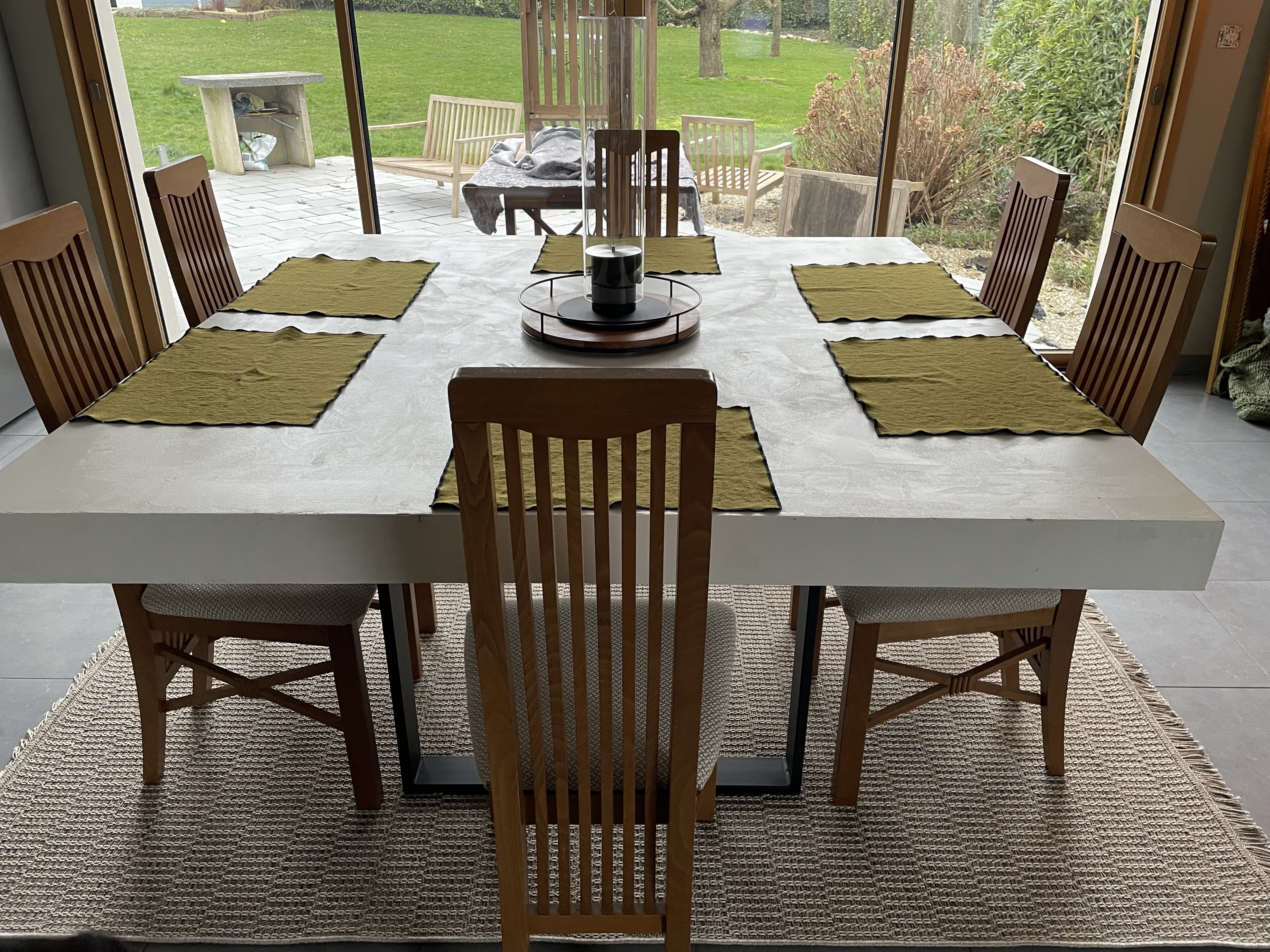 Faite sur mesure, les formes et dimensions de la table peuvent être ajustées à vos envies.